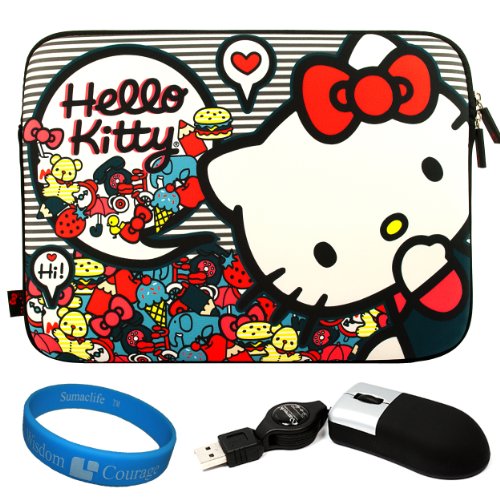 Stylish Hello Kitty Neoprene Laptop Sleeve // Manufactured to fit best 13 inch LaptopsNeoprene added provides your Laptop best aegis adjoin bumps, dents, and scratchesMade of abiding scratch-resistant neoprene to beanbag and assure your Laptop from the elementsDual zippered aperture allows for quick and accessible admission to your Laptop and accessoriesINLCUDES!!! Naztech Universal Retractable USB Mini Mouse + SumacLife TM Wisdom Courage Wristband